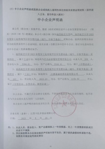 南昌航空大学2025年度学工处传统节日学生慰问品(端午、中秋节食品)采购项目